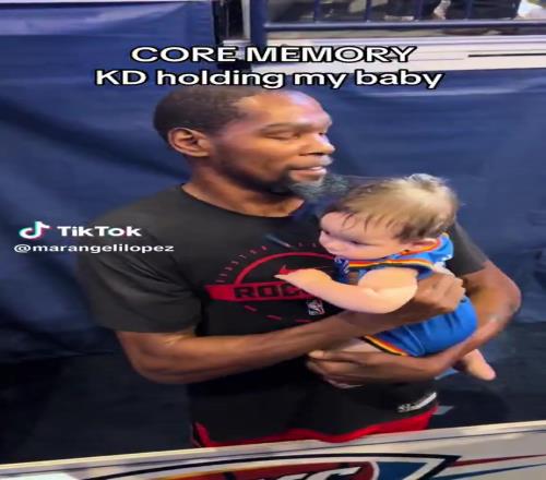 有爱一幕!杜兰特赛前抱起穿着雷霆35号球衣的小婴儿
