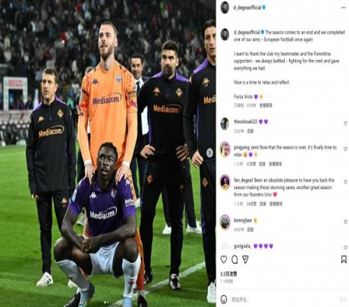 德赫亚在社媒也晒出与小基恩等队友的合照,配文写道:“本赛季结束了,我们达到了自己的目标之一,再一次获得欧战资格。我想要感谢俱乐部、我的队友以及所有支持佛罗伦萨的人们,我们一直在战斗,争取冠军,付出了我们的所有。现在是时候放松并反思了。加油,佛罗伦萨